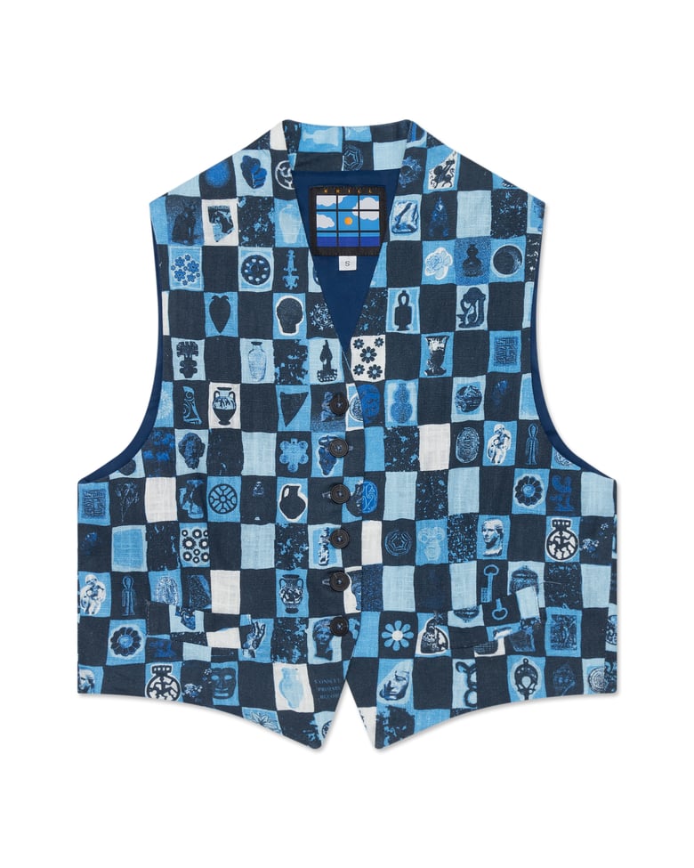 Vincenzo Shirt in Cerulean Archive Check Linen
